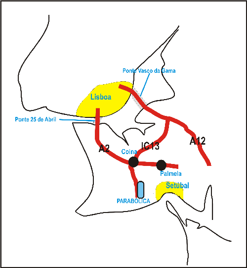 25 de Abril -> A2 -> até à saida para